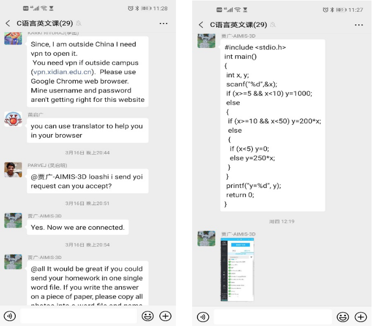 课程组经充分讨论后决定采用全英文授课模式,使留学生更容易理解课堂内容。同时考虑到学生的网络、时差等问题,教师们全面对比了各平台的优缺点,最终一致选用对网络环境要求不高、能够满足回看等功能的腾讯课堂授课,并将课程资源上传至“学在西电”,供学生查看使用。