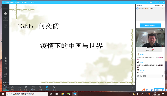 校内积极协助:杨鹏飞老师积极协助学院完成了停课不停学视频录制和直播平台功能测试工作,平复了疫情初期学生的恐慌情绪,也为其他任课老师提供了更多授课平台选择。