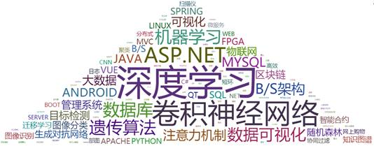 关键词的热度反映了毕业论文的研究方向和领域,对掌握学生论文研究趋势、理解学生论文内容有较大帮助。图4为本次全院论文关键词云图,字体越大表示出现的次数越多,可以看出本届毕业生论文的研究热点主要集中在与人工智能相关的深度学习、机器学习、卷积神经网络等技术领域,这也是学院毕业设计积极改革的结果。学院一贯以来对本科毕业论文严格管理,从出题到结题答辩全面监控,鼓励教师与时俱进,根据行业前沿发展动态出题,从而促进学生了解并运用理论知识和方法解决问题。