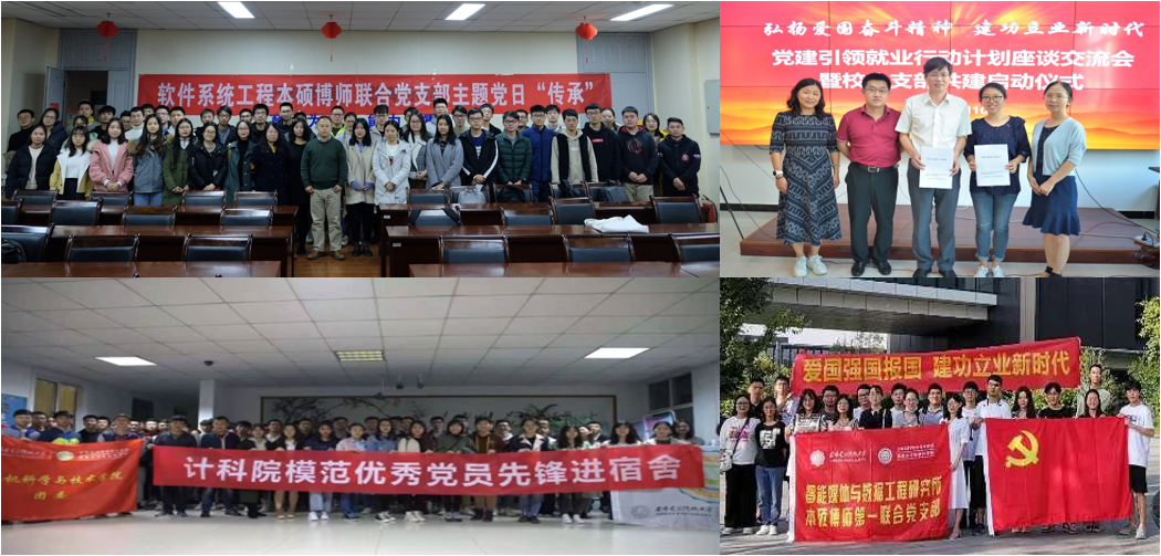 依托本硕博师联合党支部,培育有传承的支部文化。计科院党委以本硕博师联合党支部为抓手,根据8个研究所专业特点和科研资源,发挥教师和高年级博硕士生对低年级学生的传帮带作用。组织开展“传承—初心与使命”主题党日、优秀党员先锋进新生宿舍、“学习优秀科研榜样,建设科技创新型国家”主题党日等。打造共性主题突出、个性特色彰显的可传承支部文化,其中智能软件与系统新技术研究所本硕博师联合党支部围绕智能软件发展新需求与智能系统变革新趋势,形成了“‘传承’科研精神、‘发扬’拼搏作风”的支部文化;嵌入式计算技术研究所本硕博师第一联合党支部紧密结合国家自主可控发展战略,形成了“务实创新、勇于奉献”的支部文化;计算机网络与物联网工程研究所本硕博师联合党支部立足学科发展前沿,面向网络空间安全、物联网、区块链等国家重大战略,形成了“求真务实、自主创新”的支部文化。发挥联合支部书记为教师党员的作用,促进教师支部与联合支部协同共建,开展疫情背景下师生支部共度国庆中秋节等专题座谈,发挥教师对学生的思想引领、专业指导和就业引导作用,以学生的所思所想和实际需求帮助教师不断改进人才培养质量。鼓励联合支部间互助联动,开展“学长学姐经验交流”主题党日、“安全先锋沙龙”系列活动等,扩大活动吸引力和覆盖面。以本硕博师联合党支部为抓手,推进校企合作。联合支部走进华为等用人单位开展“爱国强国报国,建功立业新时代”主题党日,对接中电科西北集团西安分公司党支部、航天科工四院十七所党支部等开展支部结对共建,对接用人单位需求,共享党建工作经验。实施本硕博师联合党支部“党建引领就业”行动计划,现已举办两期活动,以党建引领推动人才培养和就业质量提升。