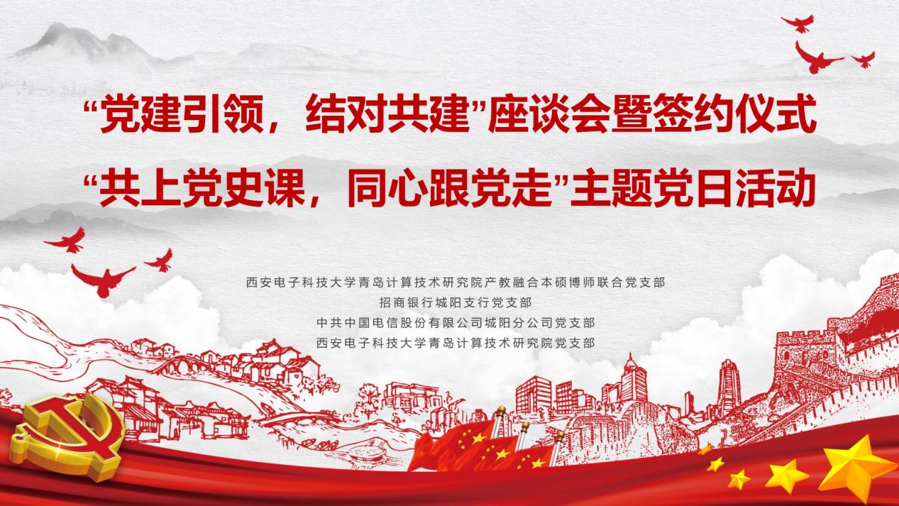 (通讯员 同榛)为认真学习贯彻习近平总书记在党史学习教育动员大会上的重要讲话精神,按照校院两级党史学习教育相关方案要求,taptap竞彩足球党委提前谋划,西电青岛计算技术研究院产教融合本硕博师联合党支部主动对接,与西电青岛计算技术研究院党支部、招商银行城阳支行党支部、中共中国电信股份有限公司城阳分公司党支部结对共建。taptap竞彩足球党委书记李青山、党委副书记张莹莹等一行5人赴西电青岛计算技术研究院参加了结对共建活动。