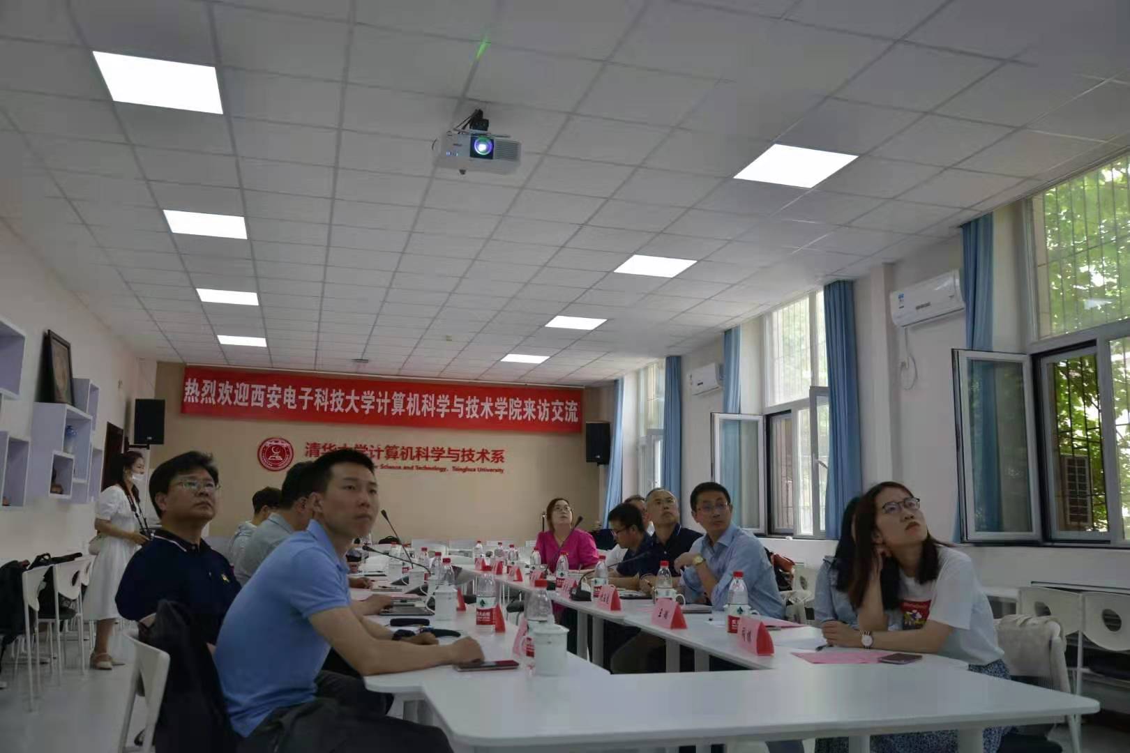 清华大学计算机系党委书记刘奕群代表清华大学计算机系对西电taptap竞彩足球一行的到来表示欢迎。他介绍了清华大学计算机科学与技术系党委基本情况,重点分享了落实基层党建工作“五个到位”的具体举措,从专题学习研讨、领雁之声系列理论学习、参观实践、师生共建主题党日团日活动等方面说明了党史学习教育工作开展情况。