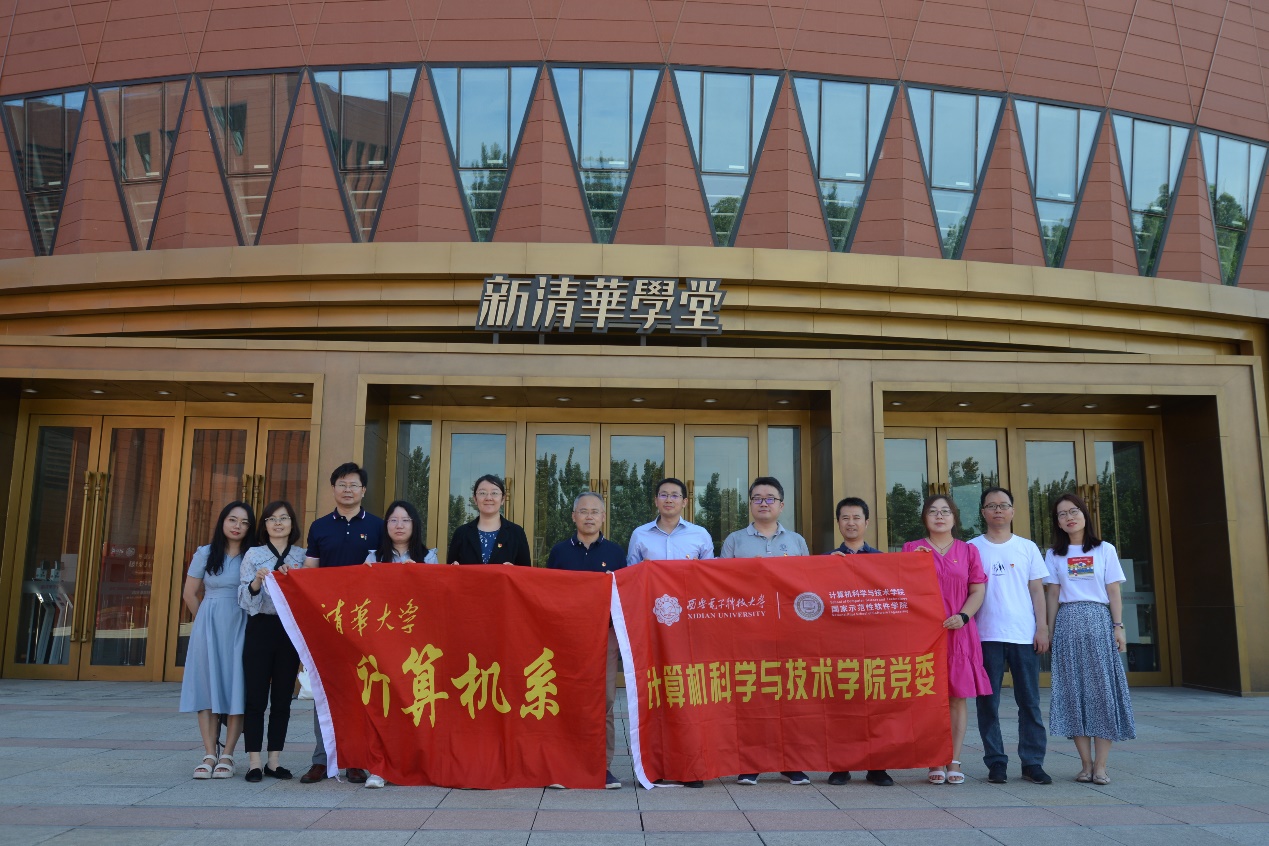 (通讯员 同榛)6月11日,计科院部分党委班子、教职工党支部书记、本硕博师联合党支部书记代表、教师入党积极分子、学生党员代表等共8人赴北京与清华大学计算机系党委联合开展党史学习教育主题活动,本次活动由学院党委书记李青山带队。