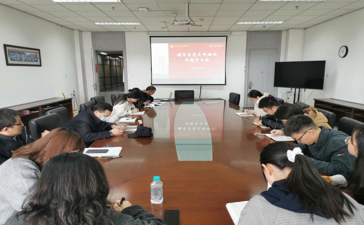(通讯员 王牌)10月28日上午,taptap竞彩足球辅导员党支部在西电南校区G楼514召开理论专题学习会议,会议就习近平总书记在中央党校中青年干部培训班开班式上的重要讲话、习近平总书记在陕西榆林考察期间的重要讲话精神、王沪宁在第二十七次全国高校党的建设工作会议上的讲话进行学习讨论。会议由支部书记梁双杰主持,支部全体成员参加会议。