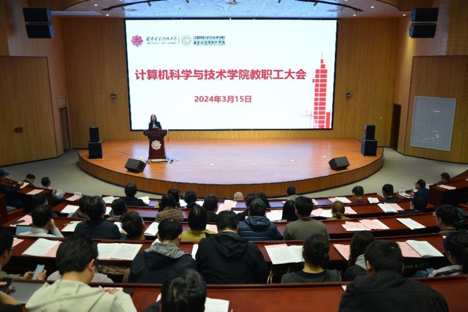 (通讯员 陈龙 同榛)为促进学校2024年工作会议精神落实,3月15日下午,taptap竞彩足球在南校区网安大楼B101报告厅召开2024年全院教职工大会,传达2024年学校工作会议精神,安排部署学院2024年重点工作,正式启动“本科教学研讨月”系列活动。学院领导班子、全体教职工等180余人参加,会议由学院党委副书记、纪委书记张莹莹主持。