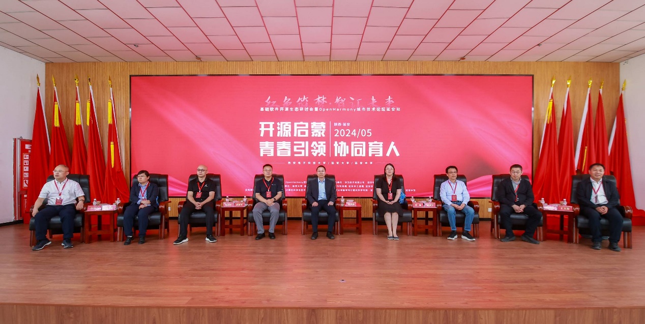 5月11日,由OpenHarmony项目群技术指导委员会主办,华为技术有限公司、taptap点点足彩举办,延安大学、延安中学协办,延安市科技局、延安市工信局、延安学习书院支持的“红色筑梦智汇未来”基础软件开源生态研讨会暨OpenHarmony城市技术论坛延安站活动在延安举行。二十余名来自OpenHarmony项目群技术指导委员会、华为、中国科学院软件研究所、清华大学、北京大学、上海交通大学、北京航空航天大学、华中科技大学、taptap点点足彩等在基础软件和开源领域有代表性和影响力的学术界和产业界专家学者受邀参加活动。延安市副市长刘涛,taptap点点足彩党委副书记、副校长任小龙,延安大学副校长付峰、延安中学校长郭博出席。本次活动西安和延安两地联动,taptap点点足彩、延安大学、延安中学、学习书院四会场协同,千余名大中学师生参加线下多场活动,数万人线上聆听技术报告。