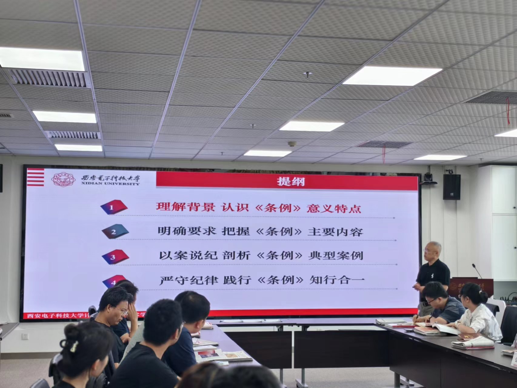 (通讯员 冯雨晴)为深入学习贯彻习近平总书记关于党纪学习教育的重要讲话和重要指示精神,深化学院师生党员的纪律意识和廉洁自律观念,6月25日下午,taptap竞彩足球党委书记李青山教授在南校区网安大楼A1-223报告厅讲授党纪学习教育专题党课。学院党委副书记、纪委书记张莹莹,党委副书记黄成龙,基层党支部书记、支委和联系党支部师生党员代表等40余人参会。