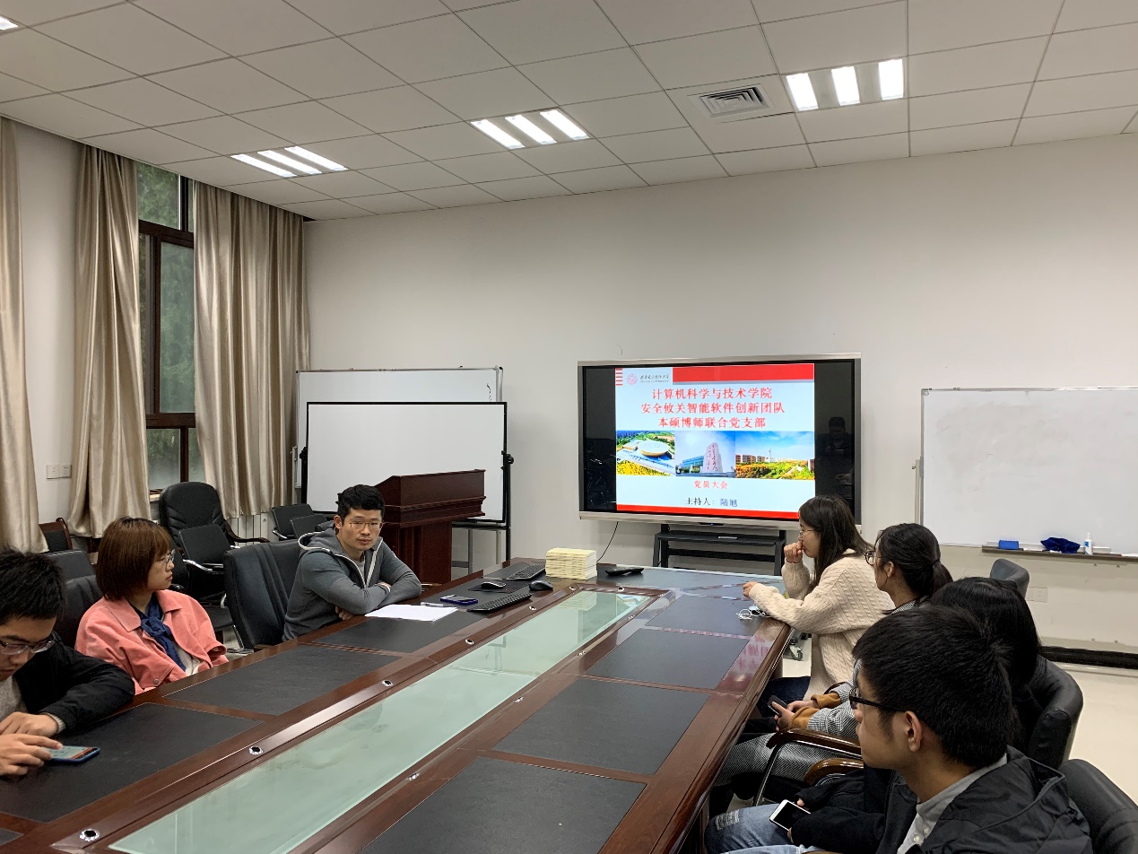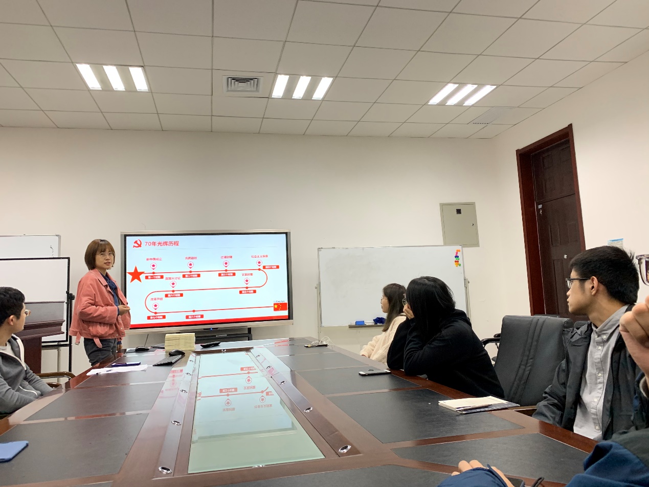 (通讯员  郭佳琦  陆旭)时值新中国成立70周年,为贯彻落实习近平总书记关于“不忘初心、牢记使命”主题教育的重要指示精神,加强爱国主义教育、弘扬爱国主义精神,计科院安全攸关智能软件创新团队本硕博师联合党支部于2019年10月15日下午在主楼四区203会议室开展了“不忘初心、牢记使命”的主题党日活动。支部书记陆旭同志主持本次活动,并由支部宣传委员郭佳琦同志作题为“我和我的祖国”的主题教育。