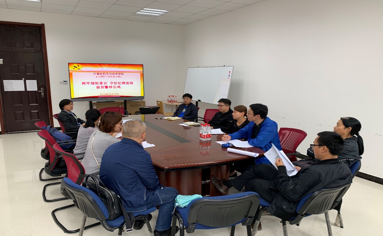 (通讯员 鱼亮 杨鹏飞) 为深入贯彻落实中央全面从严治党要求,进一步深化教育部党组巡视反馈问题整改,教育引导广大党员树牢规矩意识,守好纪律底线,营造风清气正的校园政治生态,深刻反思taptap官网“8∙19”案件教训,按照学校党委《关于召开教职工党支部专题组织生活会的通知》要求和学院党委统一部署,taptap竞彩足球计算机工程系党支部于2019年9月19日召开了专题组织生活会,计算机工程系党支部书记鱼亮主持了本次会议。