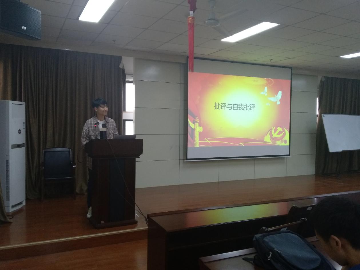 最后,学院党委委员宋胜利同志对于此次组织生活会进行了总结发言。首先,他肯定了党支部开展组织生活会的重要意义,通过组织生活会帮助支委班子总结工作,听取意见,更好地开展支部工作。其次,他谈到,组织生活会为党支部党员提供了一次反思问题、寻找方法、总结经验的机会,各位党员要在今后的学习生活中扬长避短,修正问题,充分发挥党员先锋模范作用。最后,他针对支部建设中存在的问题与党支部党员进行了亲切交流,主要包括开展组织生活会的流程、政治理论学习和专业知识学习如何有机结合、优秀学生党支部建设的规范等方面,并给予了党支部具有指导性的意见建议。