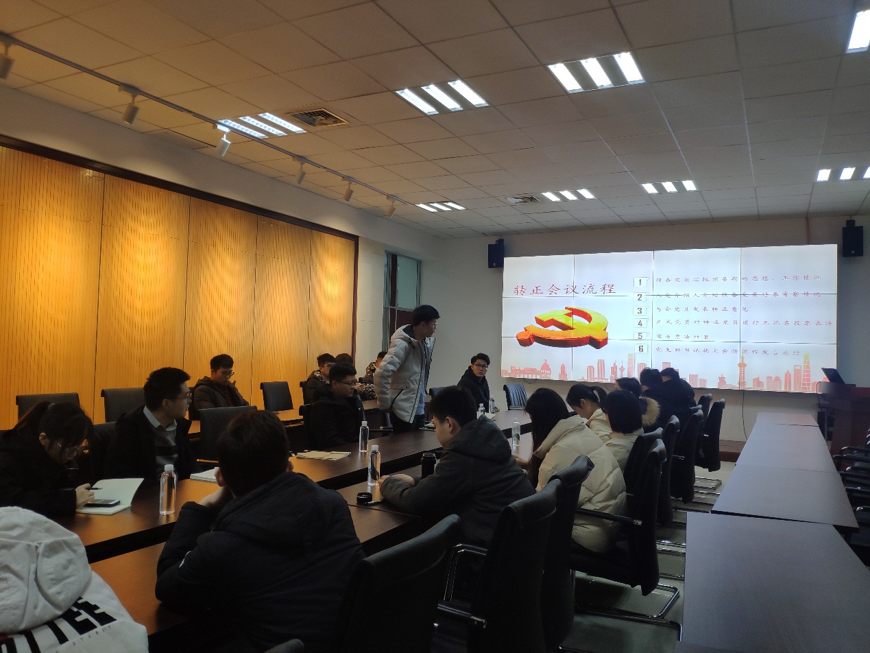 学习结束后,会议进行预备党员转正环节。按照规定,转正申请人张淏然同志、王凯博同志依次汇报了本人履历、家庭和主要社会关系情况,以及成为预备党员的一年时间里思想、学习、生活等各方面的变化。随后,在申请人回避的情况下,出席会议的党员围绕两位申请人的转正问题进行了讨论,在此基础上,出席会议的全体正式党员就两位申请人的转正问题进行表决,两位预备党员同学均获全票通过,成为正式党员。马海洋同志代表支部向张淏然同志、王凯博同志宣读了表决结果,并带领两位同志宣读入党誓词。宣誓结束后,两位新党员同学各自发言,表达了作为一名正式党员,今后会更加严格要求自己,努力改正自身的不足,以身作则,牢记党的各项宗旨,在各方面不断完善自己,时刻发挥党员的先锋模范作用,争做一名合格的党员。
