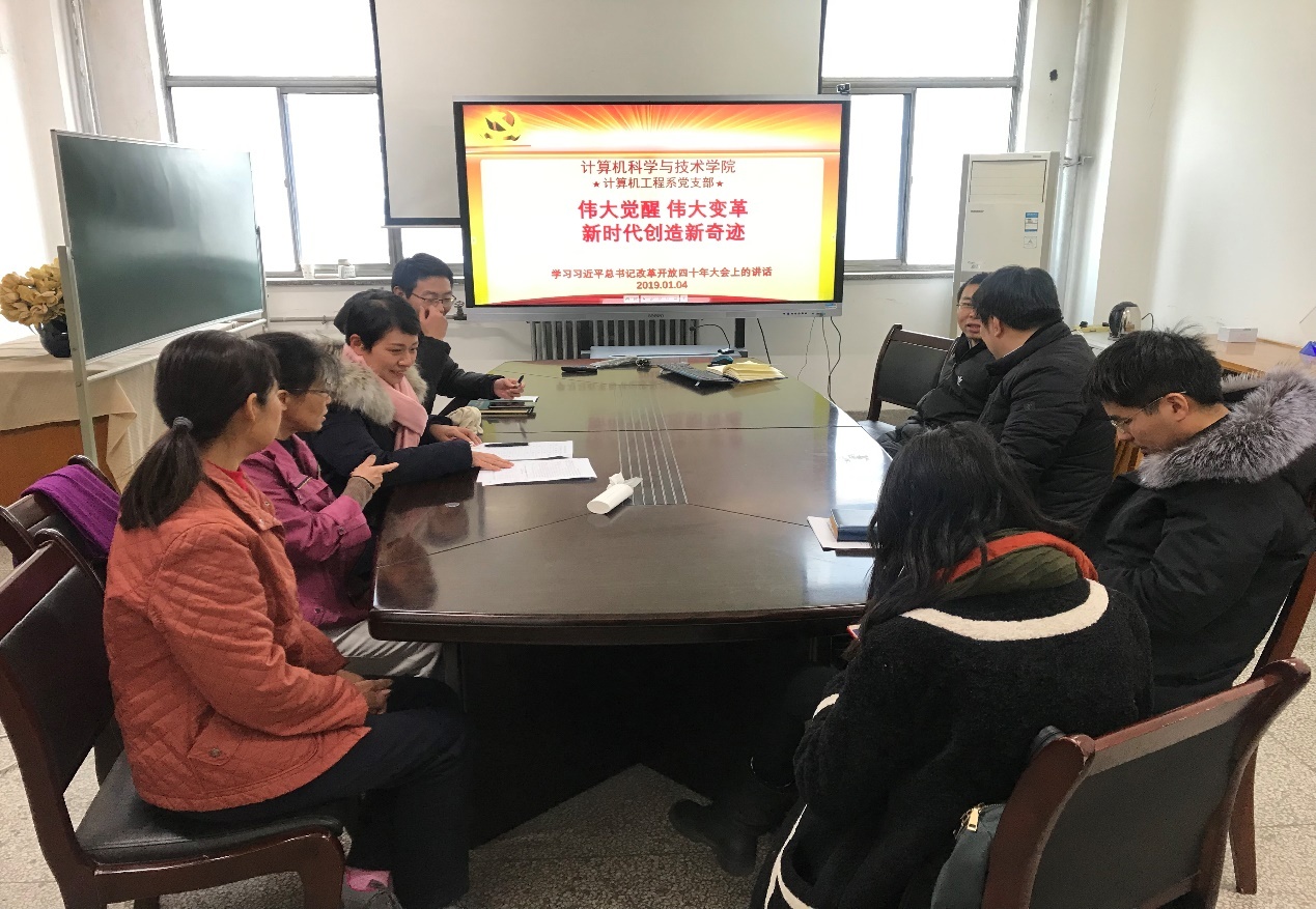 (通讯员:杨鹏飞 鱼亮)历史的发展有其规律,只要把握住历史发展大势,抓住历史变革时机,奋发有为,锐意进取,就能更好前进。12月18日上午,在庆祝改革开放40周年大会上,中共中央总书记、国家主席、中央军委主席习近平在大会上结合我国40年来改革发展辉煌历程发表重要讲话。1月4日下午,在2019新年的第一个支部主题活动日中,taptap竞彩足球工程系支部召开专题学习会,深入学习习近平总书记重要讲话精神,集中开展研讨交流。学习会由支委委员杨鹏飞代班主持,工程系党员同志参加。