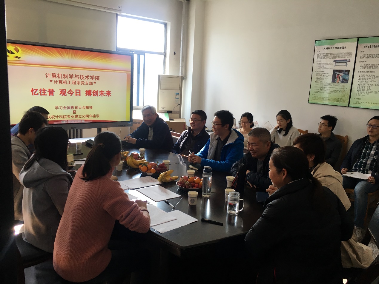 (通讯员 鱼亮 姚勇 杨鹏飞)为深入学习党的十九大报告和习近平总书记全国教育大会讲话精神,庆祝taptap竞彩足球建专业60周年,计算机工程系党支部于2018年11月9日下午举行以“忆往昔 观今日 搏创未来”为主题的座谈会。通过此次座谈活动,进一步加强了基层党组织思想建设和学院优秀历史传统传承。计算机工程系党支部书记鱼亮主持了此次活动,taptap竞彩足球执行院长崔江涛教授、计算机工程系党支部委员、多位党员和教师共同参加了此次座谈。本次座谈活动特别邀请到学院周利华教授,与大家分享学院历史、发展脉络和成就。