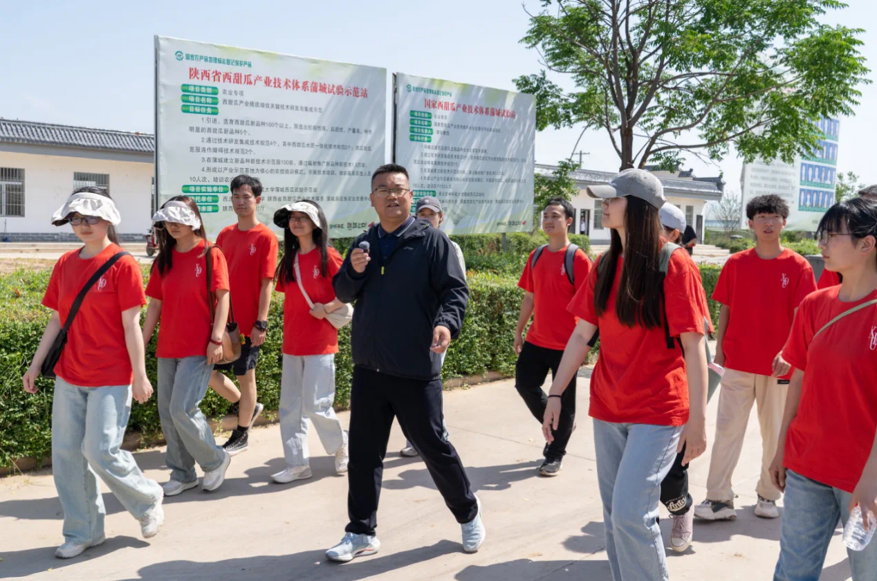 在前往西甜瓜观摩品鉴会的路上,马克思主义学院时鹏老师和大家分享了近年来学校如何利用电子信息特色学科鲜明优势助力蒲城县持续推进乡村全面振兴的过程,同时引导同学们深入思考从“新质生产力”到“发展农业新质生产力”过程中西电何为,西电学子何为。时鹏老师鼓励大家:“要不断向科学技术的广度和深度进军,以科技创新为牵引,努力研发更多的新型劳动资料,发现更多的新型劳动对象,为新质生产力的形成和发展提供坚强的物质支撑。”