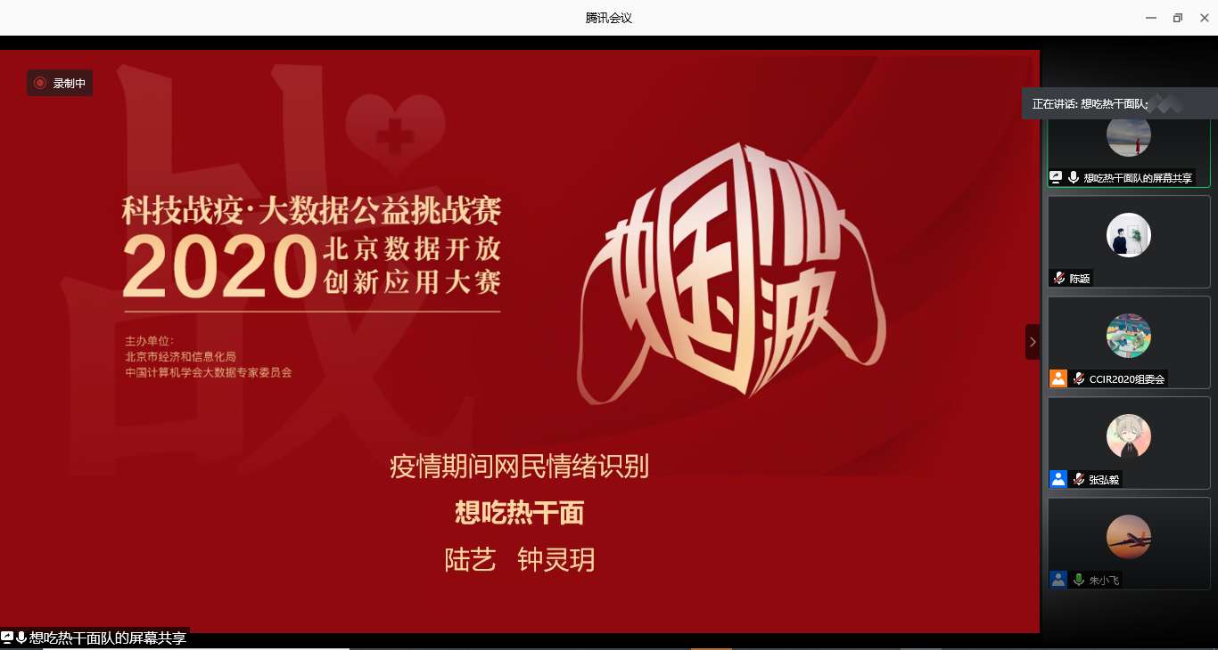 会议期间还举行了中文信息学会信息检索专委会会议,大会举办了专题讲习班(Tutorial),工业论坛和新委员论坛等,优秀会议论文报告以及邀请了最近在信息检索领域国际顶级期刊和会议上发表了高水平论文的作者做论文报告与交流。本次会议还与北京市大数据中心、中科大智慧城市研究院(芜湖)、北京市政交通一卡通有限公司和数联众创等机构联合举办了“疫情期间网民情绪识别”评测活动,获得本次任务前三名的队伍受邀到会议现场做了技术报告。