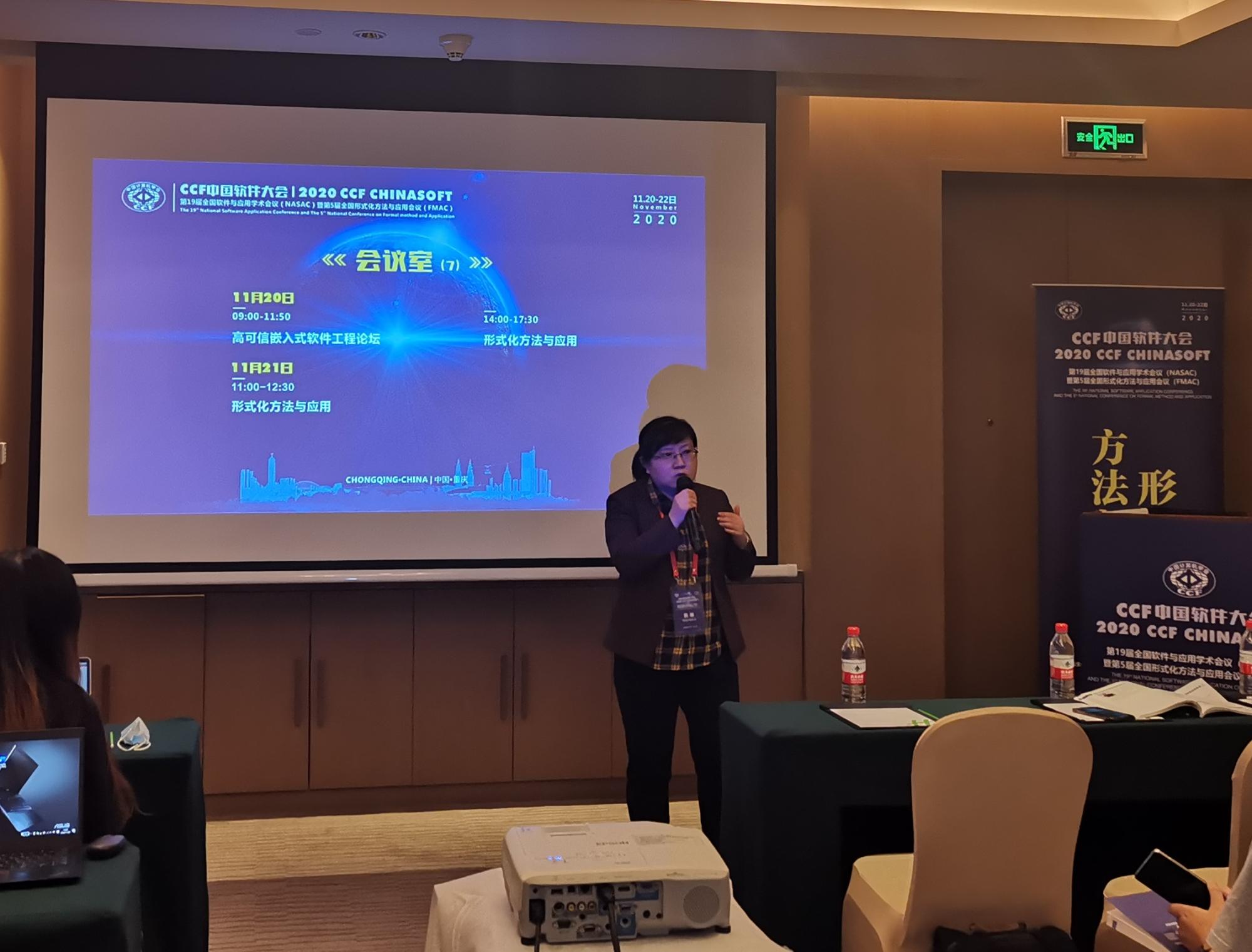 学科参会教师与学生代表在大会上还汇报了多篇被录用的大会论文,被录用的论文同时会被推荐到《软件学报》等知名期刊发表。其中,包括王小兵副教授的论文《基于MSVL的智能合约形式化验证》,张南副教授的论文《芯片开发的功能验证形式化方法与应用》,张捷博士的论文《基于污染变量关系图的Android应用污点分析工具》以及王璐博士的论文《SAFER:基于事件关系保障识别质量的自适应分析方法》等。