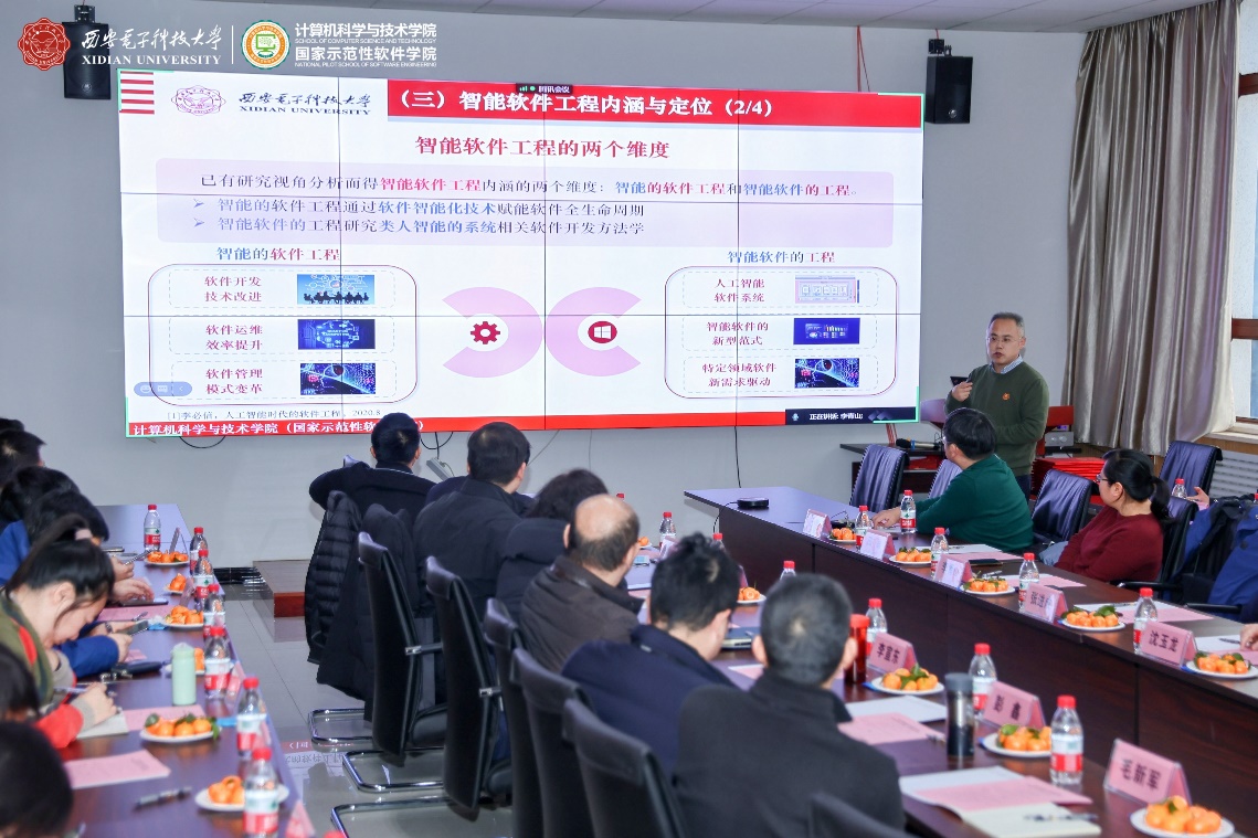 西安市智能软件工程重点实验室学术委员会成员通过线上线下共同参与了此次会议。实验室学术委员会主任由中国科学院院士、航天五院副院长、“嫦娥五号”探月工程总设计师、taptap竞彩足球名誉院长杨孟飞院士担任,学术委员会首席顾问由中国科学院院士、军事科学院副院长、CCF理事长梅宏院士担任,实验室学术委员会副主任由CCF系统软件专委会主任、北京大学金芝教授担任。实验室学术委员会成员还包括CCF软件工程专委会主任、南京大学李宣东教授,重庆邮电大学校长高新波教授,CCF服务计算专委会主任、浙江大学taptap竞彩足球副院长尹建伟教授,CCF软件工程专委会副主任、复旦大学taptap竞彩足球副院长彭鑫教授,CCF软件工程专委会常委、武汉大学应时教授,湖南省复杂系统软件工程重点实验室副主任、国防科技大学毛新军教授,中科院软件所副总工程师、智能软件中心主任武延军研究员,中航工业集团软件首席科学家、集团计算技术研究所副所长韩炜研究员,taptap点点足彩研究生院副院长、计算理论与技术研究所所长田聪教授,taptap点点足彩软件工程研究所所长刘西洋教授,以及李青山教授。实验室学术委员会委员共15人,其中校外委员11人,校内委员4人。本次会议现场参会的委员有11人,在线参会的委员有杨孟飞院士、尹建伟教授2人,教育部软件工程专业教指委委员、taptap点点足彩副校长王泉教授与CCF软件工程专委会副主任、华为软件分析实验室主任王千祥教授两位因临时有事缺席。