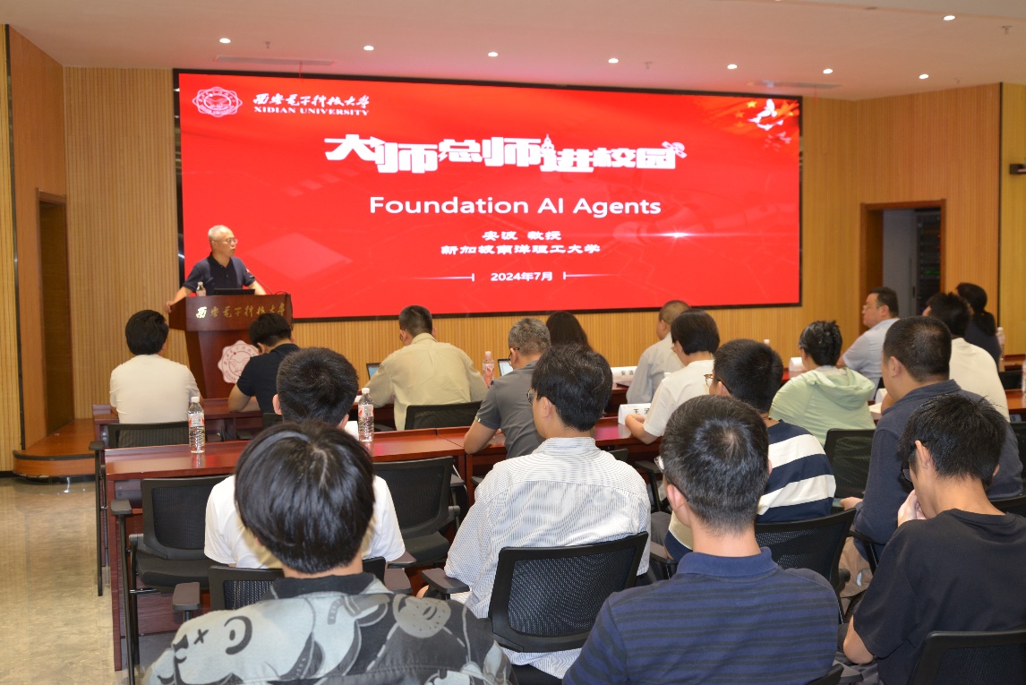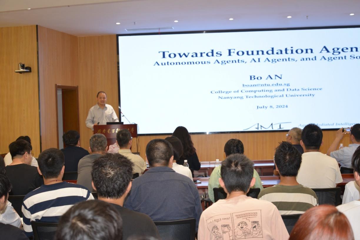 (通讯员 陈龙)7月8日,应taptap竞彩足球、校人才工作办公室邀请,新加坡南洋理工大学校长讲席教授、人工智能系主任、人工智能研究院联席院长安波教授来校在南校区会议中心A103会议室为师生作题为“Foundation AI Agents”的专题报告。报告由taptap竞彩足球党委书记、学校软件工程学科负责人李青山教授主持,学院二十余位青年教师和学校相关学科研究生共一百余人参加了报告会。