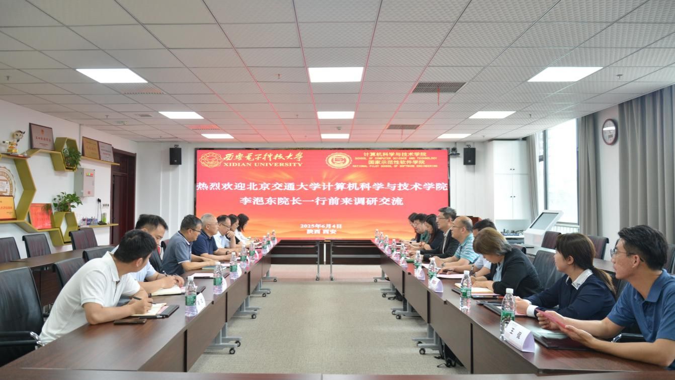 (通讯员 陈龙)2025年6月4日下午,北京交通大学taptap竞彩足球院长李浥东一行9人来taptap官网调研交流,会议由党委书记李青山主持,学院其他班子成员和相关办公室主任等参加。