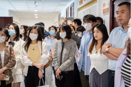 杨鹏飞副教授带领与会嘉宾参观网安大楼学院文化长廊,结合图文并茂的展示内容,全面介绍了学院的变迁发展、办学成果等内容。