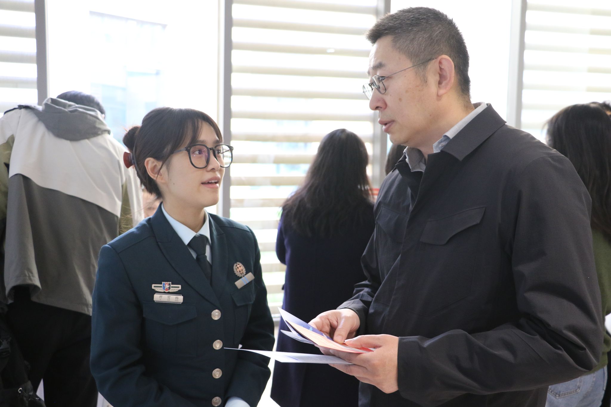 双选会期间,学院领导来到现场,与参会单位和求职毕业生亲切交谈,了解同学们的就业进展,听取用人单位的意见和建议。