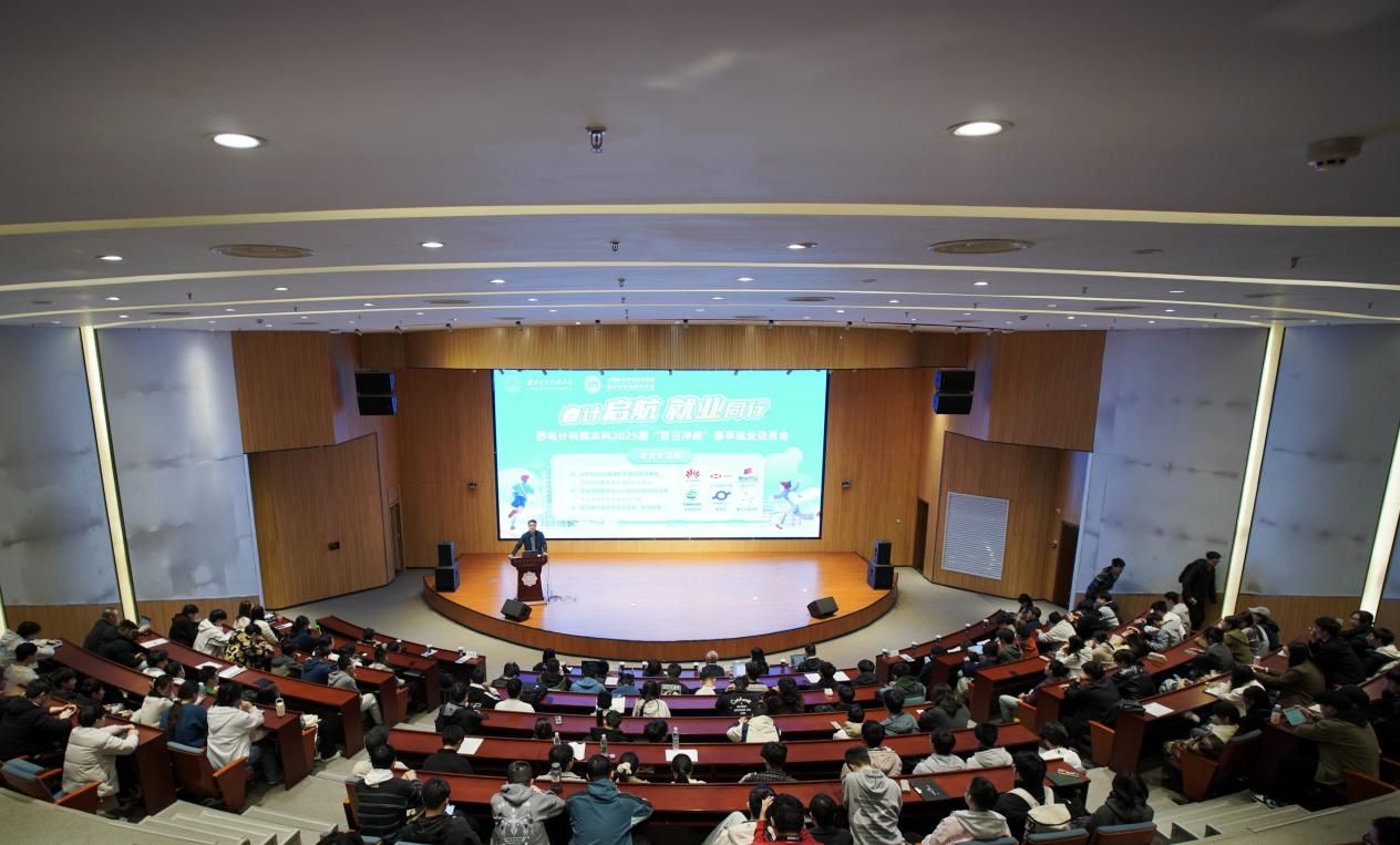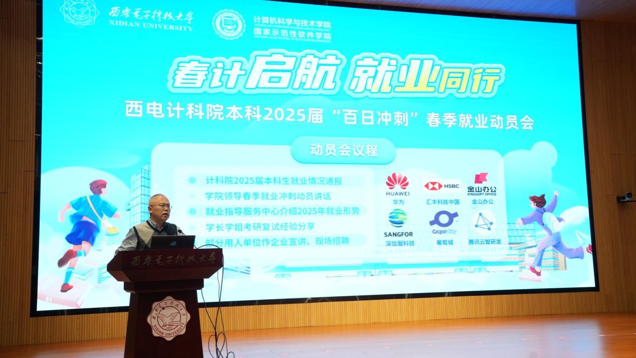 3月14日下午,计科院组织“春计启航·就业同行”——百日冲刺春季就业动员会,学院党委书记李青山、就业指导服务中心詹奉珍、学院分管本科学生工作相关负责同志,以及计科院200余名本科生参与活动。动员会现场搭起就业推荐平台,邀请了华为、汇丰科技中国、金山办公、深信服科技、葡萄城、腾讯云智研发六家企业作宣讲和现场招聘